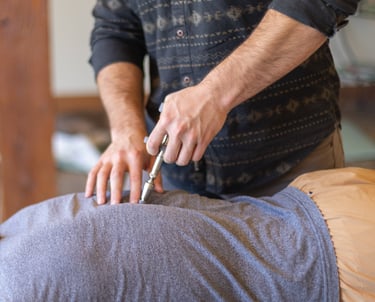 Instrument adjusting involves using specialized tools to apply a precise, controlled force to the neurospinal system, typically with less physical force than manual adjustments. Using these light force techniques is great for a variety of people including pediatrics, geriatrics, and anyone who doesn't like hearing the "cracking/popping noise" that occurs with a manual adjustment.